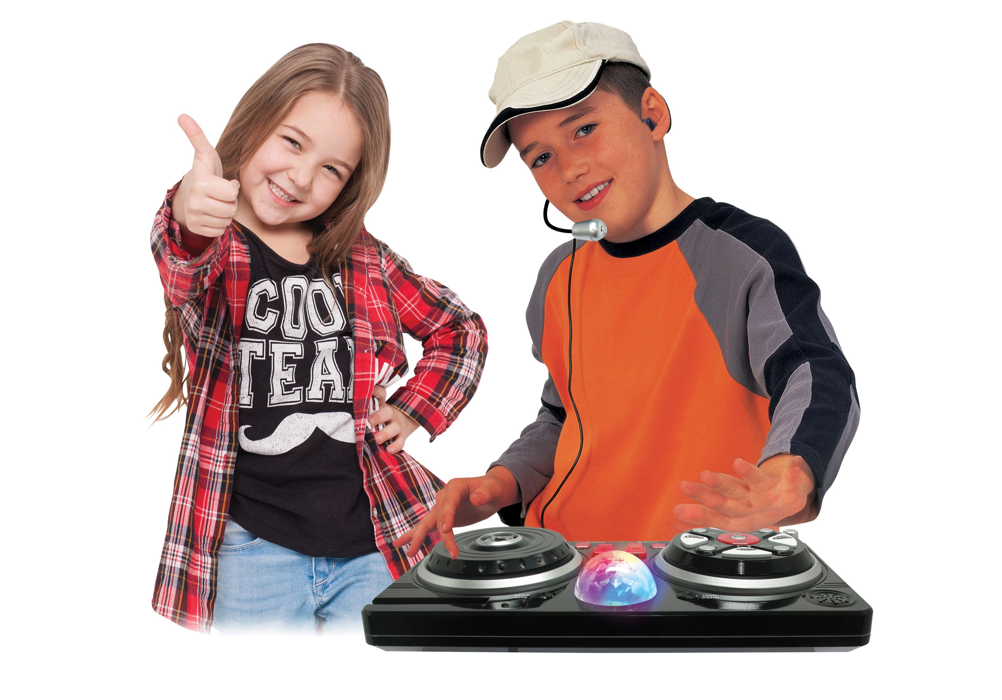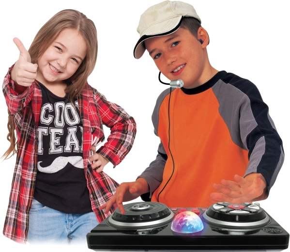 Transformez la chambre des enfants en un petit studio d’enregistrement. Cette table de mixage avec micro casque confortable et boule disco lumineuse offre une large palette de fonctions pour un jeu créatif et des premiers essais musicaux. Grâce au raccordement d’un mobile ou d’un lecteur mp3, il est facile de lancer des morceaux favoris et de les mixer avec des beats et des effets.