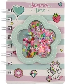 La couverture avec fenêtre transparente remplie de confettis et d’étoiles attire l’œil au premier regard et donne au carnet un style unique, apprécié des enfants comme des adultes.