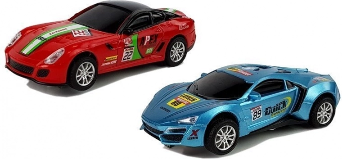 - Inclus dans le coffret : 2 petites voitures (rouge, bleue), circuit, commandes, alimentation
