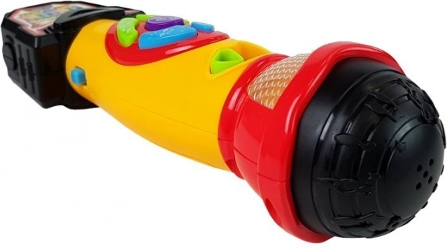 Microphone karaoké pour enfants jaune‑noir avec enregistrement et effets lumineux