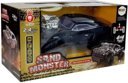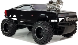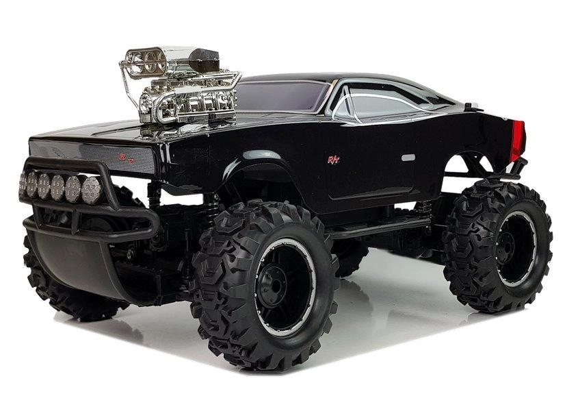 Cette voiture RC tout-terrain noire associe le look musclé d’une muscle car à de hautes performances en off-road. Sa construction résistante absorbe les chocs et la suspension de qualité aide à franchir les irrégularités, tandis que les larges roues à profil profond offrent une excellente adhérence sur l’herbe, le sable et le gravier.