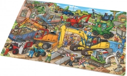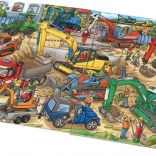 Ce grand imagier mène les jeunes lecteurs dans l’animation d’un chantier où travaillent différentes machines de construction – de la pelleteuse rouge à double pneumatique à la chargeuse verte sur pneus, jusqu’à l’excavatrice jaune sur chenilles. Des scènes colorées et claires éveillent la curiosité et développent la motricité fine et la pensée logique.
