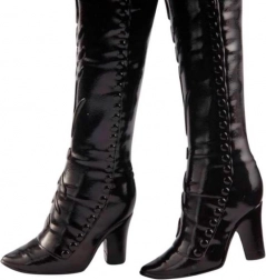• Tenue détaillée : robe noir‑violet, cape et jupe amovibles, bottines.