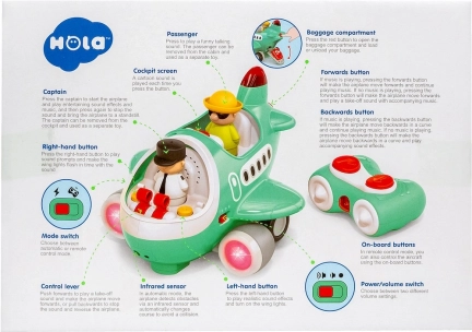 L’avion RC interactif HOLA est conçu pour un jeu sûr et joyeux. Grâce à ses bords arrondis et à son matériau robuste, non nocif et sans BPA, il est idéal pour les petits explorateurs. La prise en main est facile afin que les enfants acquièrent rapidement les bases du pilotage tout en développant précision et patience.