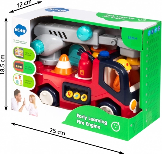 Le camion de pompiers HOLA est conçu avec une attention aux détails rappelant un véritable véhicule de secours. Les enfants seront séduits par ses couleurs authentiques, ses marquages et ses éléments interactifs. En appuyant sur les boutons, les lumières clignotent et la sirène retentit, enrichissant le jeu et stimulant les sens.