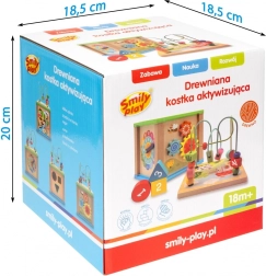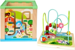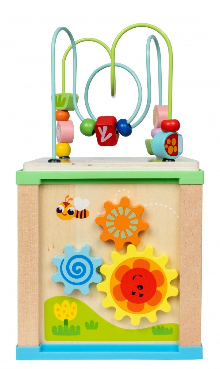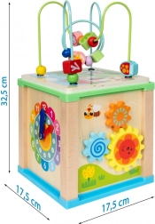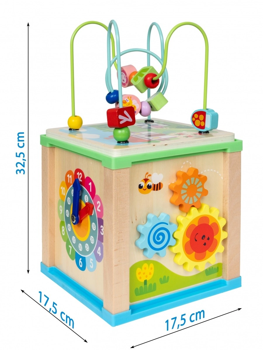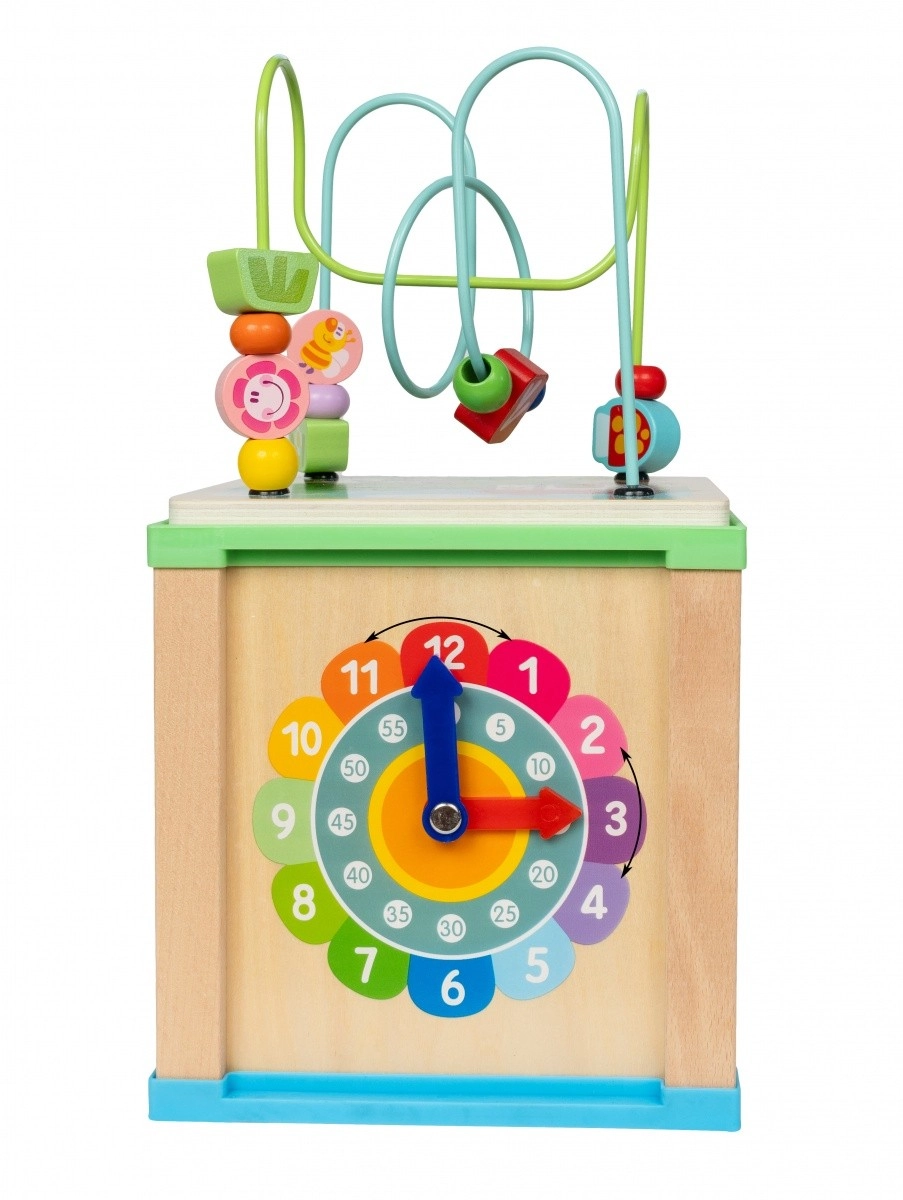 Cube d’activité en bois avec labyrinthe et horloge