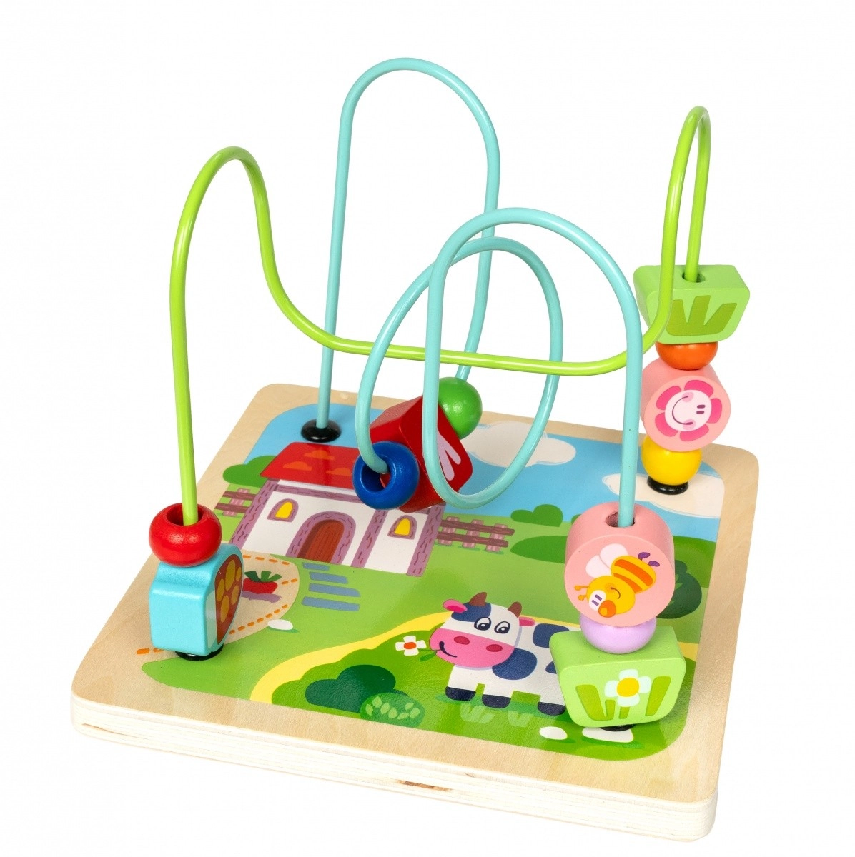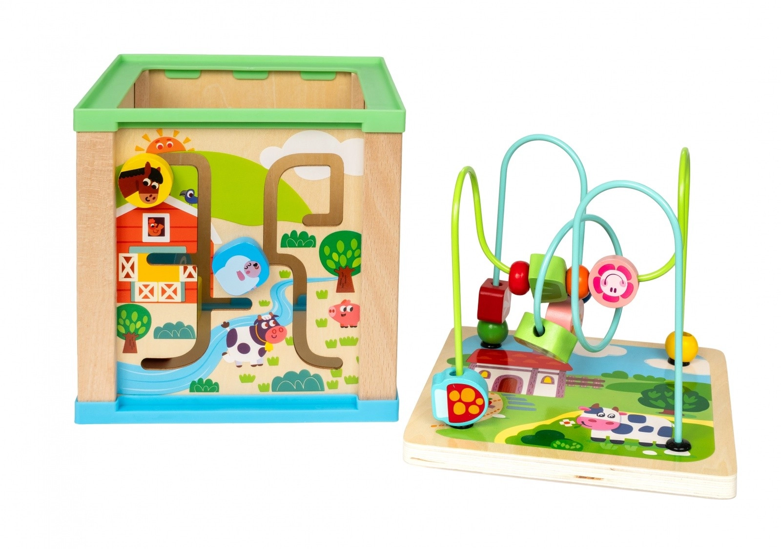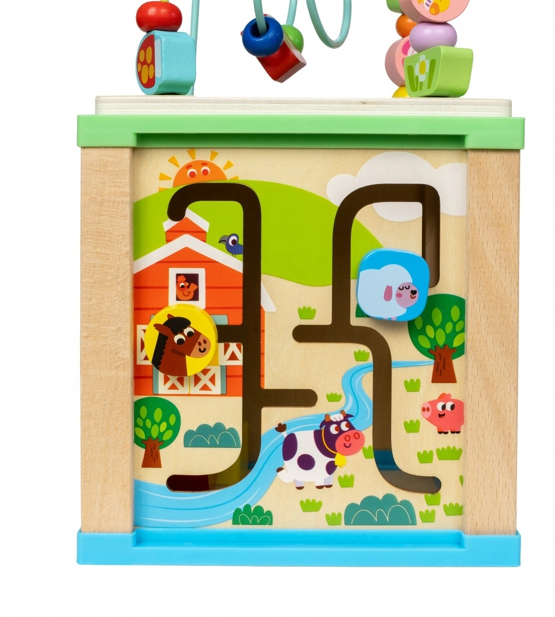 Cube d’activité en bois avec labyrinthe et horloge