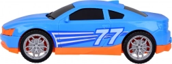 L'ensemble comprend également une voiture bleue de sport, qui s'adapte parfaitement à la dépanneuse. Le jouet entier est réalisé avec des couleurs réalistes - jaune, gris, rouge et bleu.