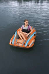 La sécurité et le confort sont assurés par 3 chambres à air indépendantes et un fond gonflable nervuré, qui amortit les irrégularités et améliore la stabilité. Les portes-pagaies facilitent le pagayage, tandis que la corde périphérique aide à l’embarquement, au transport et à l’amarrage du bateau.