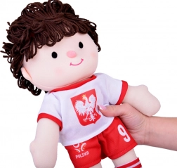 Cette poupée toute douce aux couleurs de la Pologne deviendra immédiatement la favorite des petits joueurs et supporters. Le maillot stylé avec l’aigle sur la poitrine et le numéro « 9 », les petites chaussures de sport et les cheveux bruns donnent à la poupée un aspect authentique. Idéale pour les jeux de rôle, elle stimule l’imagination et la motricité fine.