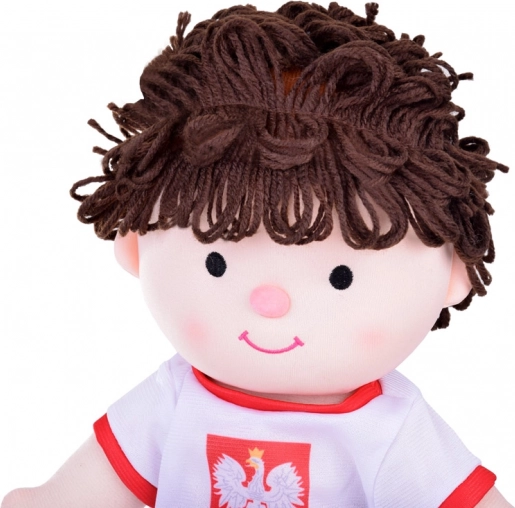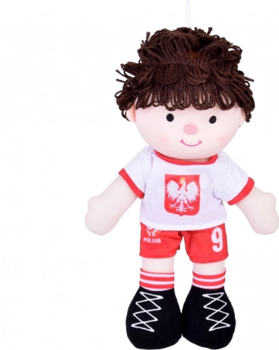 Poupée en chiffon pelucheuse footballeur en maillot polonais