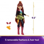 Pénétrez dans le monde de l'Académie des Licornes avec cette poupée de 23 cm de hauteur, inspirée de la série animée et du livre préféré. La poupée Valentina est travaillée jusque dans les moindres détails et sa personnalité amusante se reflète dans ses cheveux rouges, oranges et jaunes, que vous pouvez coiffer avec les accessoires fournis. Elle porte une tenue d'équitation stylée avec une veste de cavalier noire, une jupe à carreaux, un pantalon d'équitation marqué Magie du Feu, des bottes rouges avec des clous en métal et des gants d'équitation.