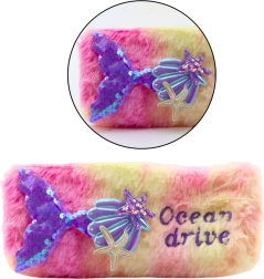 Trousse unique en peluche conçue pour les enfants qui aiment les sirènes et la mer ! La trousse rose avec une queue violette, des paillettes et des coquillages est l'accessoire idéal pour les fournitures scolaires. Doux et mignon, parfait pour ranger stylos, crayons et d'autres fournitures scolaires essentielles.
