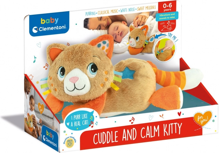 Ce chaton en peluche moelleux de CLEMENTONI BABY est conçu pour apporter du réconfort aux enfants et les aider à s’endormir. Les vibrations reproduisent de manière réaliste le ronronnement d’un chat, favorisant la relaxation, tandis qu’un choix de sons apaisants (musique classique, bruit blanc et mélodies délicates) crée une atmosphère agréable pour le sommeil.