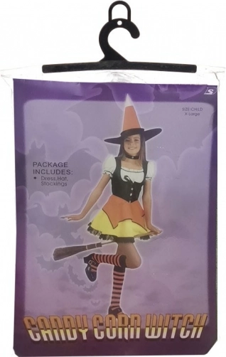 Costume de sorcière pour filles en taille XL. Ensemble avec chapeau et costume, idéal pour le carnaval et Halloween. Enfilage facile, style remarquable.