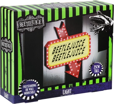 Lampe LED BEETLEJUICE sous licence, alimentée via USB‑C ou 3× AAA. Superbe décoration et idée cadeau pour les fans. Câble USB‑C inclus.