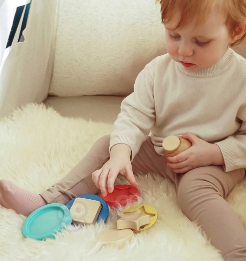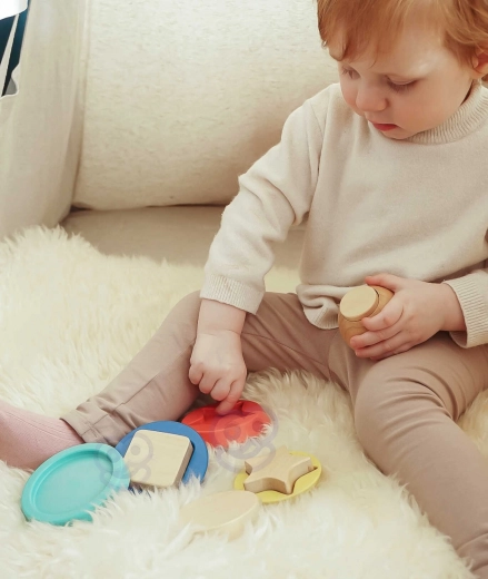 L’enfant apprend en s’amusant à distinguer les couleurs, les formes et les tailles, et développe sa pensée logique ainsi que sa patience.