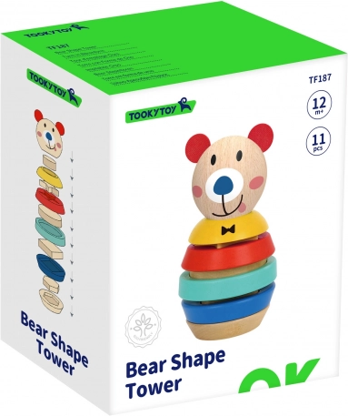 Adorable tour empilable en bois en forme d’ourson de TOOKY TOY, qui séduit par ses formes colorées de différentes tailles et par sa fabrication sûre. Les enfants dès 12 mois exercent leur motricité fine, leur coordination œil–main et l’apprentissage des couleurs et des formes. Le bois lisse sans arêtes vives et les peintures non toxiques garantissent un jeu sûr et joyeux.