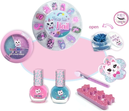Set de maquillage pour enfants avec une adorable trousse zippée et un pendentif, idéal comme cadeau pour les petits qui aiment découvrir le monde de la beauté. Ce set stimule leur créativité et leur imagination.