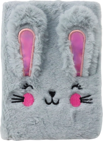 Carnet en peluche A5 avec petit lapin, ligné, gris
