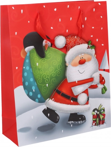 Sac cadeau de Noël élégant en taille moyenne M (26 × 32 × 10 cm) pour un emballage rapide et chic des cadeaux. Proposé en 4 motifs de Noël différents, il est solide, pratique et idéal pour les livres, les produits cosmétiques ou les petites boîtes.