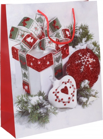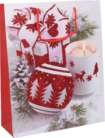 Sac cadeau de taille moyenne avec motifs de Noël, un choix parfait pour un emballage élégant et stylé de vos cadeaux de Noël. Idéal pour ceux qui apprécient les détails et souhaitent présenter leur cadeau de Noël sous son meilleur jour.