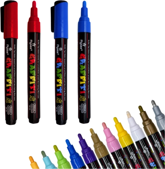 Set de marqueurs acryliques de haute qualité aux couleurs intenses pour des projets créatifs sur diverses surfaces. Sûrs et non toxiques, idéals pour tous les créatifs.