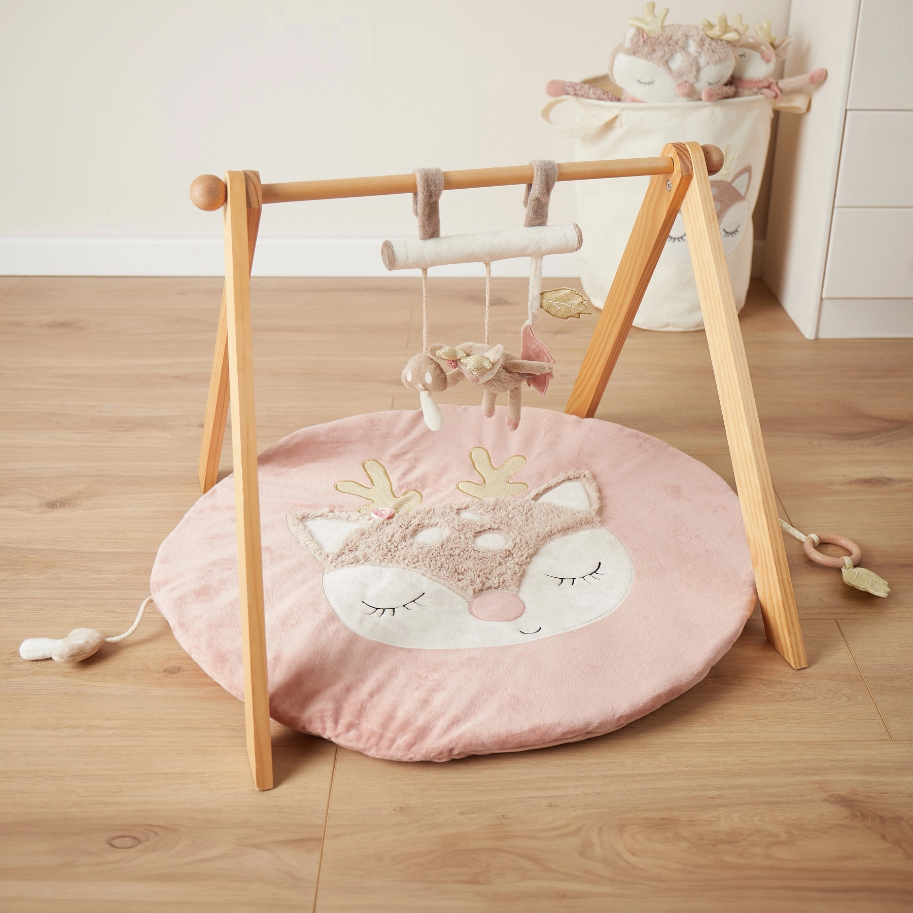 Des détails bien pensés stimulent la motricité fine et les sens : diverses textures invitent au toucher, les feuilles bruissantes et le faon hochet développent l’ouïe, tandis que le petit champignon au doux ronronnement capte l’attention de bébé et l’apaise. L’entretien facile et la qualité de fabrication garantissent une longue durée de vie.