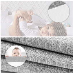 La lisse supérieure rabattable simplifie l’usage au quotidien : s’allonger, se lever et vérifier le bébé endormi devient facile. La maille respirante assure la circulation de l’air et la visibilité, tandis que le tissu résistant se lave aisément. Une poche latérale accueille tétine, mouchoirs ou petits jouets.