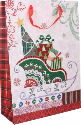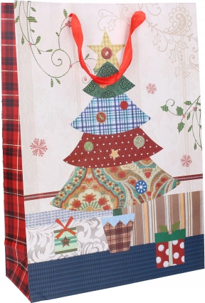 Le sac cadeau en papier avec motif de Noël est un choix idéal pour emballer rapidement et avec esthétique vos présents. Grâce à ses dimensions généreuses, il accueille confortablement des objets volumineux et sa fabrication solide garantit un transport en toute sécurité.