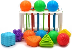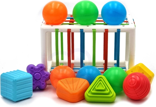 Comprend au total 12 pièces, dont 6 balles souples et 6 cubes sensoriels rigides.