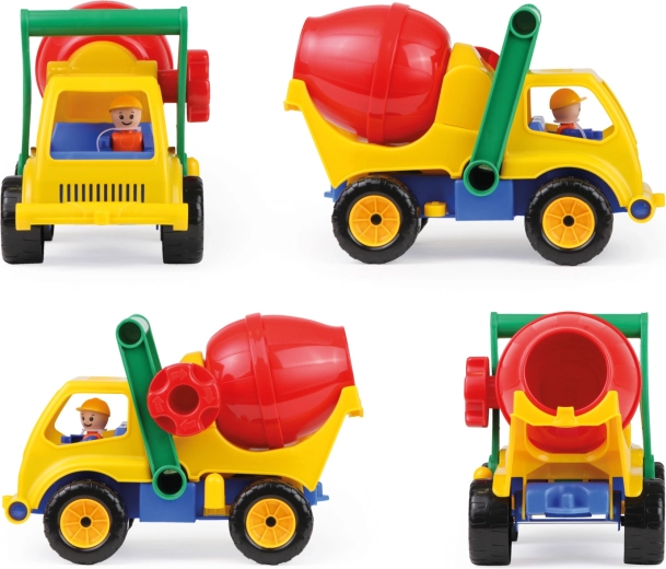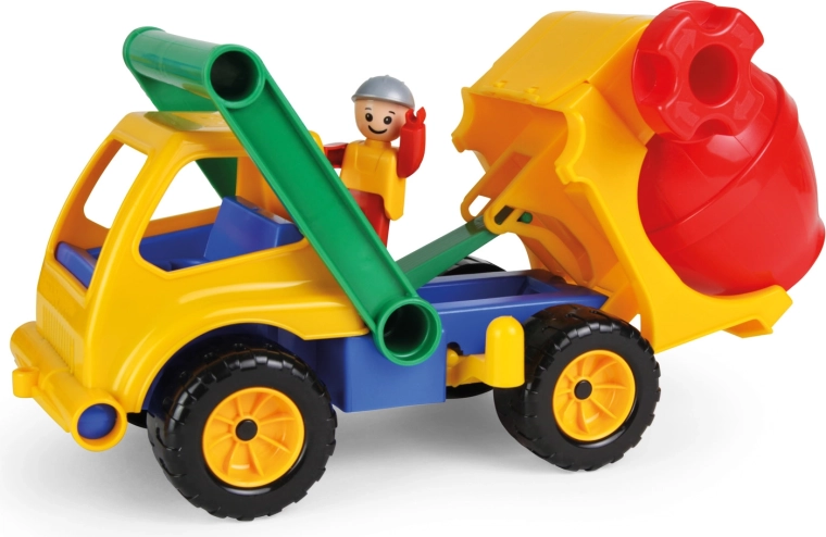 La bétonnière en plastique résistant de haute qualité convient pour jouer à la maison comme dehors dans le bac à sable. Elle comprend un verrou de sécurité contre tout basculement indésirable et une cabine ouvrable avec un petit personnage actif.