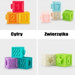 Les cubes sensoriels Woopie Baby offrent un jeu sûr et stimulant pour les enfants – du couinement lorsqu’on appuie, aux diverses surfaces, jusqu’aux reliefs avec chiffres et animaux. Grâce à leur matière souple, ils sont doux pour les gencives et tiennent parfaitement même dans les plus petites mains.