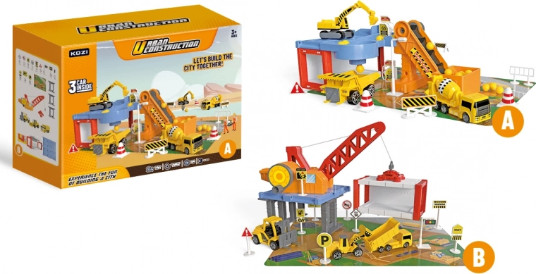 Ce Garage pour véhicules de construction incroyable contient divers engins de construction, y compris un camion à benne, une pelleteuse et un malaxeur. Grâce à cela, les enfants peuvent développer leur créativité et imagination en réalisant différents projets de construction. L'emballage comprend également un convoyeur et des panneaux de signalisation qui ajoutent une touche réaliste au jeu.