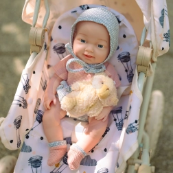 La poupée imite facilement un vrai bébé : les bras et les jambes sont articulés et la tétine se glisse confortablement dans la bouche pour apaiser et jouer à l’endormir.