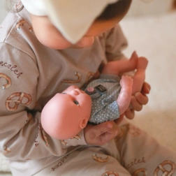La poupée est livrée avec une couverture rose qui peut se transformer en tente, en porte-bébé ou simplement servir de couverture idéale pour les jours plus frais. La couverture est ornée de petites oreilles, rendant la poupée encore plus mignonne et unique.