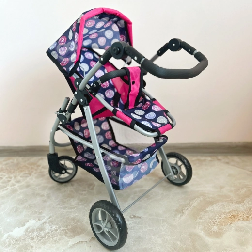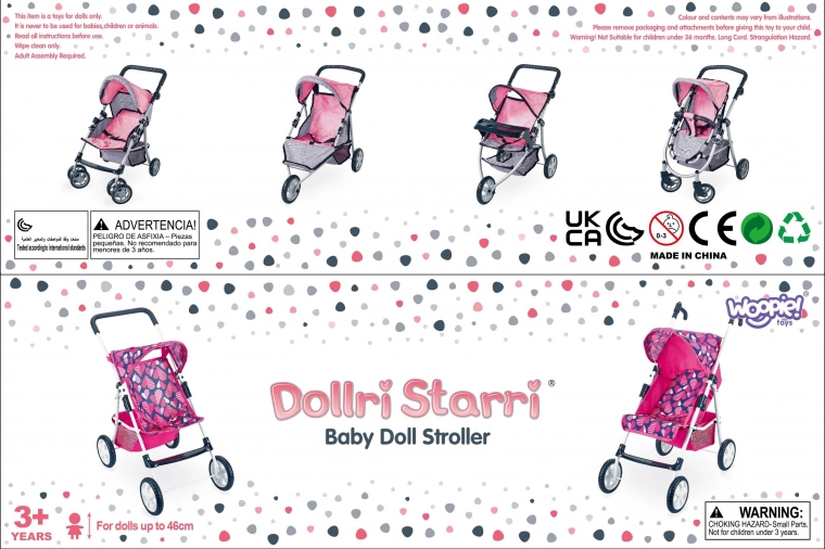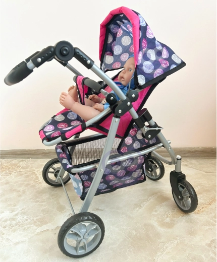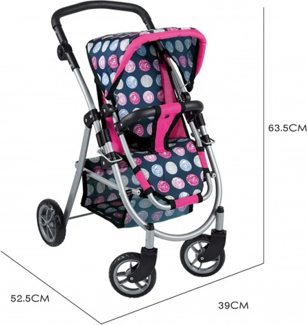 Rangez tous les accessoires dans le panier textile et protégez la poupée grâce à la capote pliable. Une solution pratique pour jouer dedans comme dehors.