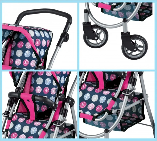 woopie royal poussette pour poupées à 4 roues avec siège réglable
