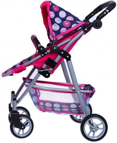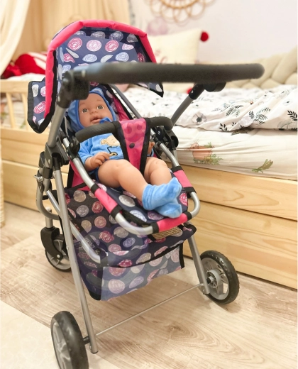 La structure métallique légère mais stable avec poignée souple est douce pour les petites mains. Le panier textile spacieux sous le siège accueille tous les indispensables – biberon, couverture et petits accessoires. La capote pliable protège la poupée lors des jeux au « soleil » et la poussette se range facilement.