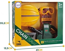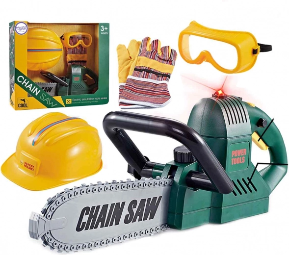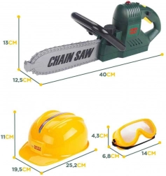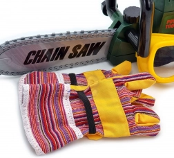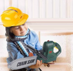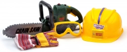 Grand ensemble de jouets avec scie, casque, lunettes et gants de la société Woopie, que les enfants adorent. Les enfants jouent souvent à imiter les adultes et cette scie pour enfants en toute sécurité est le choix parfait pour les petits aides.