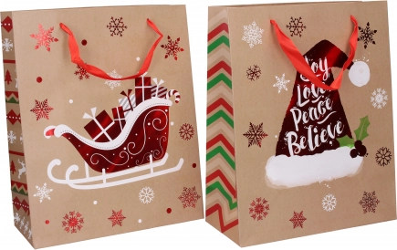 Sac cadeau de Noël taille M en papier robuste, dimensions 32 × 26 × 10 cm. Emballage élégant et rapide pour cadeaux moyens avec motif festif raffiné.