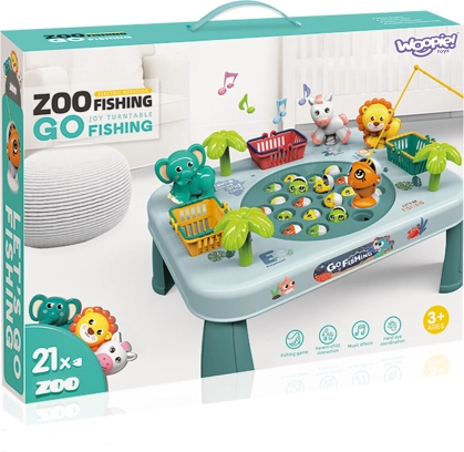 Le jeu familial amusant Pêche aux poissons de la marque WOOPIE apporte des heures de joie partagée. La table interactive avec plateau de jeu mobile, construction robuste et design coloré motive à la compétition – attrapez un maximum de poissons, jetez-les dans les paniers et comptez les points. Grâce aux mélodies et effets sonores, le jeu est encore plus divertissant.