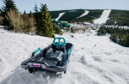 Profitez des joies de l’hiver avec les luges dirigeables Skipper titan, qui offrent une vitesse élevée, un freinage fiable et un pilotage sûr via le volant. La construction massive à ski unique assure une excellente stabilité et une glisse fluide, tandis que la zone de déformation frontale augmente la sécurité en cas de collision.