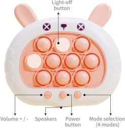 Amusant et interactif, le jeu POP IT Lapin apporte du plaisir aux enfants comme aux adultes. Il stimule l’esprit, les compétences manuelles, la coordination œil-main et aide à lutter contre le stress. Ce jouet propose quatre modes de jeu différents qui maintiennent chacun en haleine.