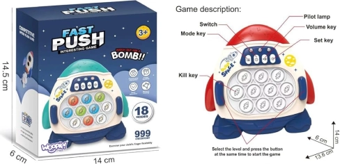 Le jeu électronique WOOPIE Pop It Fusée apporte aux enfants dès 3 ans beaucoup de divertissement interactif et de stimulation sensorielle. Grâce à ses effets lumineux et sonores, il motive à jouer plus longtemps, développe la motricité fine, la coordination œil-main et aide à réduire le stress. Sa conception robuste et sûre en matériau résistant garantit une longue durée de vie.