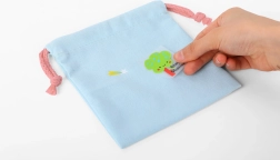 Les enfants peuvent concevoir leur propre sac à l’aide d’autocollants colorés et développer leur créativité.