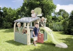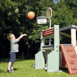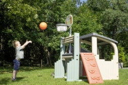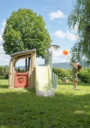 Le centre de jeux multifonction SMOBY réunit sport, jeu créatif et détente. Les enfants peuvent viser le panier de basket, travailler leur précision avec la cage de football, renforcer leur coordination sur le mur d’escalade et se défouler sur le toboggan de 150 cm. Une maisonnette couverte avec petite porte offre des moments calmes et un espace pour l’imaginaire.