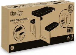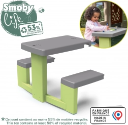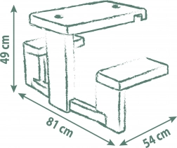 La table de pique-nique avec bancs est un complément idéal pour les maisonnettes d'enfants, comme Neo Jura Lodge, My New House, Chef House et Evo Friends House. Elle est conçue pour offrir aux enfants un endroit confortable pour jouer et se reposer.