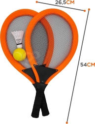 L'ensemble est conçu pour deux joueurs et développe idéalement la motricité chez les enfants. Grâce aux poignées ergonomiques, les enfants apprennent facilement à bien tenir les raquettes. Jouer dehors assure de plus un séjour sain à l'air frais.