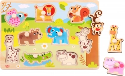 Les puzzles en bois de la marque Tooky Toy sont conçus pour les enfants à partir de 18 mois et sont idéaux à la maison comme à la maternelle. Ils se composent d’un plateau et de 9 pièces avec des animaux qu’il faut placer au bon endroit. Le plateau comporte des cavités correspondant à la forme des pièces colorées. L’ensemble est entièrement fabriqué en bois et peint avec des couleurs sûres qui raviront chaque enfant et offriront de nombreuses heures d’amusement.
